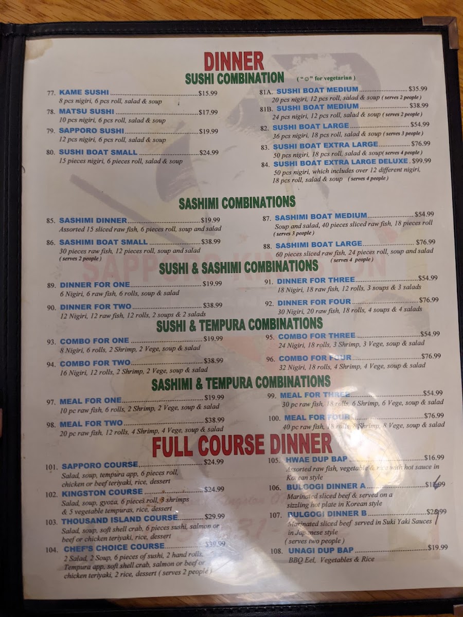 Moreover, Sapporo Sushi Kingston stands out with its friendly service and cozy atmosphere. Whether you're a vegetarian or a meat lover, there are clearly labeled options to cater to all preferences. With reasonable prices and hearty portions, this charming spot is undoubtedly a gem in Kingston's culinary scene.